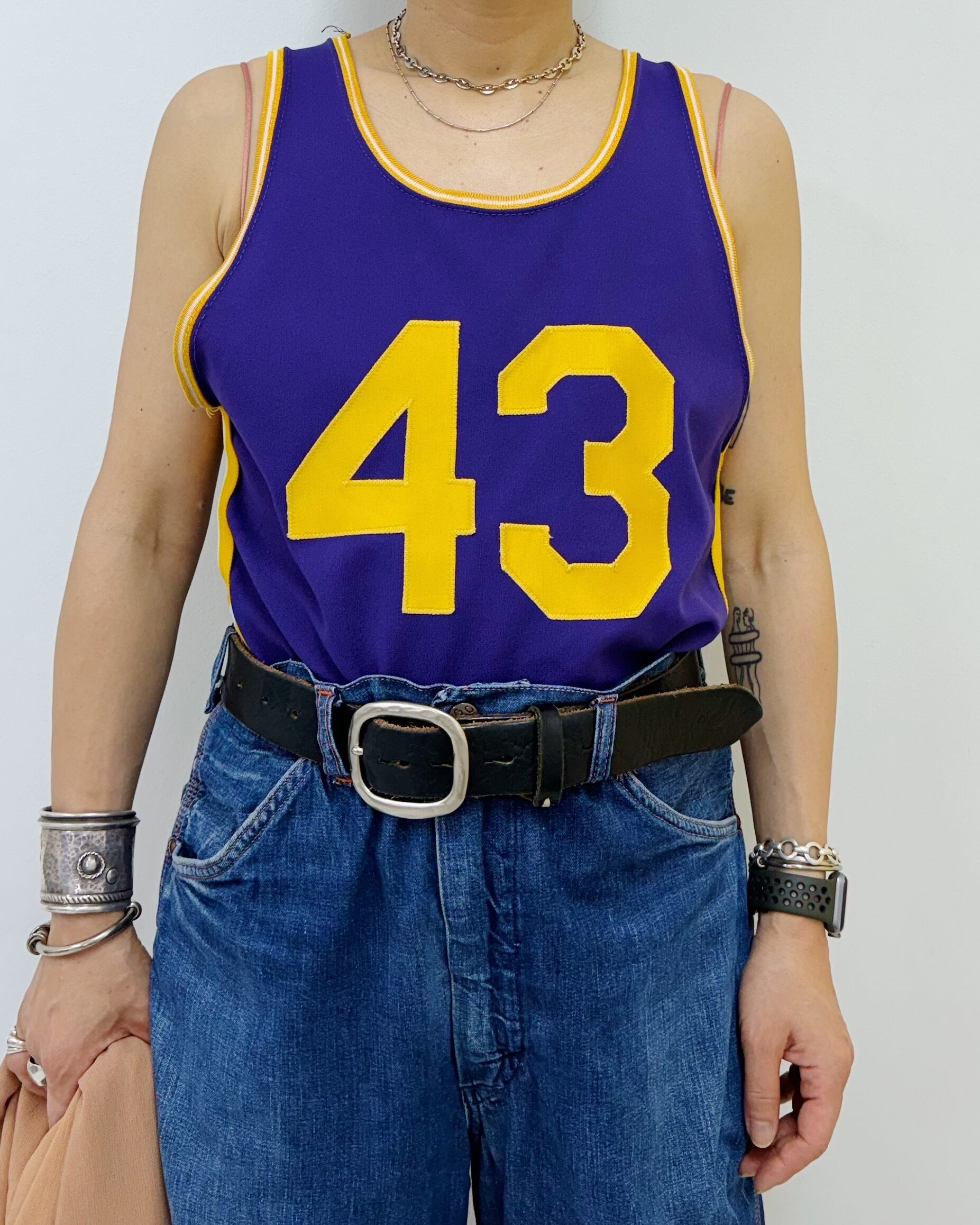 紫に黄色…。NBAのレイカーズを彷彿とさせるカラーリングですが、どこの大学の物かは分かりません笑