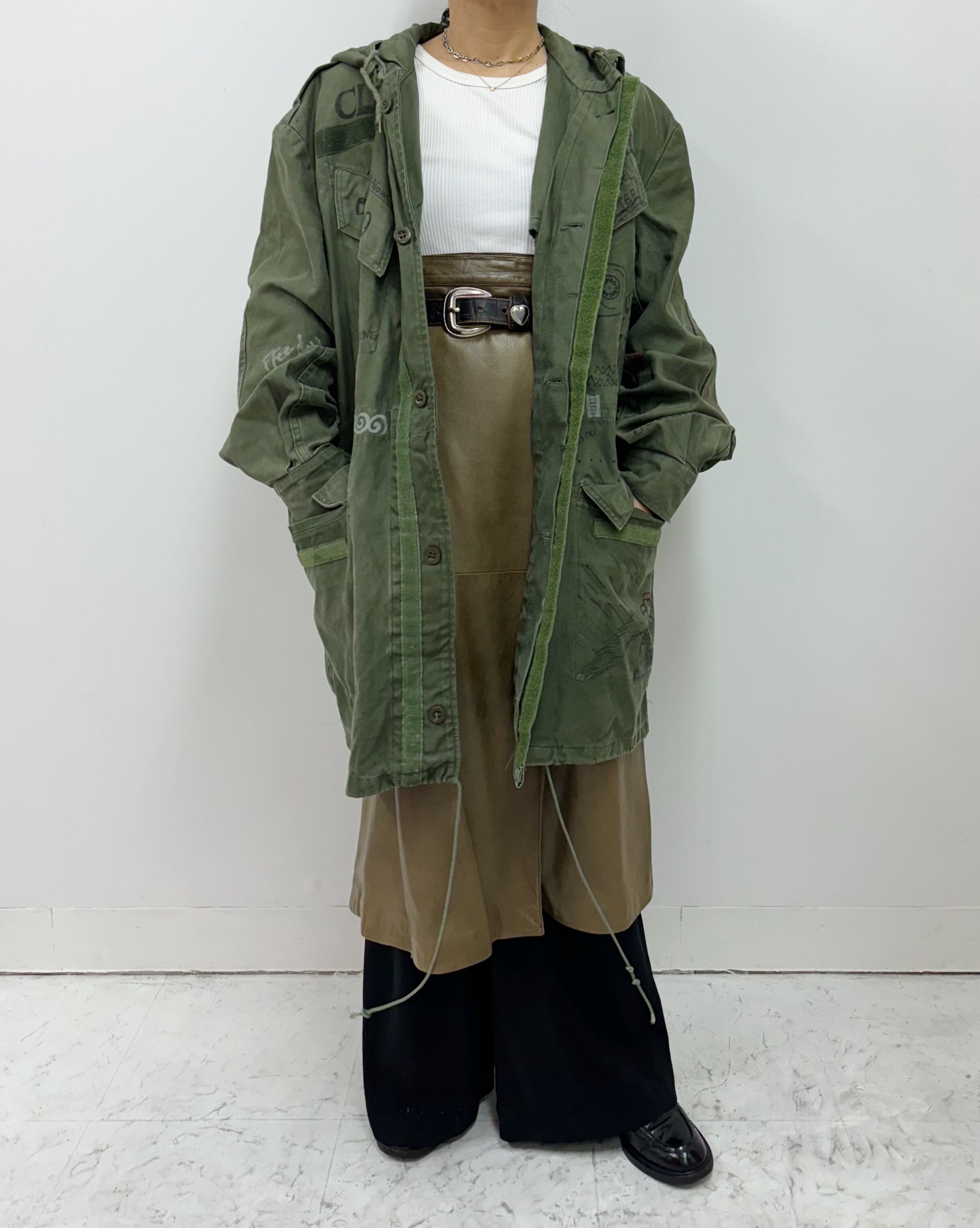 ベルギー軍が使用していたミリタリーコートにtamago storeでペイントカスタムした特別な一枚